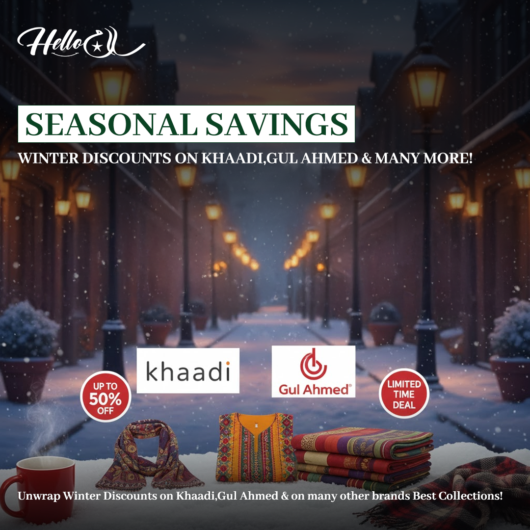 Discounts Latest Section Discounts Meezan Bank Card Discounts LAAM’s Sale: Up to 50% Off PIA Flights Exclusive Discounts Ramzan discounts on hotels Best deals for Physiotherapy Budget Friendly Travelling Soft Swirl New Dessert HBL Discounts at Restaurants Winter Discounts BaadMay:Installments Pakistani Brand Discounts Hasan Raheem’s earbuds Asian Wok Card Discounts Gul Ahmed Winter Sale Food Festival Wah Mall Daraz 11.11 Sale Stylo Sale | Upto 51% Off AR clinics 10% Off Audionic 11.11 Biggest Sale Khaadi Winter Collection 2025 20% Off at Esquire Hotels Nishat Linen Sale 2025 Edenrobe Clearance Sale Metro End Season Sale MTJ Clearance Sale J. Clearance Sale Restaurants Discounts In Isl SAYA Sale: Up to 50% OFF Asim Jofa 50% Off Leisure Club End Season Sale Uniworth End Season Sale 2025 ECS Grand Annual Sale 2025! Bareeze Super Sale 2025! Gul Ahmed Defence Day Sale J. Defence Day Sale 2025 Maria.B Year-End Sale 2025 Outfitters End of Season Sale 2025 MTJ Defence Day Sale 2025 Saya Sale 2025! Limelight Mid-Season Sale 2025 Khaadi Online Sale 2025 Hyundai Elantra Discounts 2025 Exclusive Jazz Discount 2025 50% Off Saudia Flights SAYA’s Azadi Sale | Flat 30%-50% OFF So Kamal’s Mid-Season Sale Urbansole Monsoon Sale Emirates Airlines Discounts Nishat Summer Sale Motifz Clothing Discounts Win Big with HBL Mastercard Unze London’s Summer Sale Bata Super Sale HBL Card Discounts Discounts -Hyundai Santa Fe Drive Green for Less Lahore Real Estate Discounts Car Discounts in Pakistan iPhone 16 Batik Air Discounts Meezan Easy Home Stylo Sale Unlock Savings Across Pakistan Discounts on ZTE nubia Phones Fashion Sale Pakistan Win a Brand-New Hyundai Tucson Sohaye by Diners Sale 2025 iPhone 14 on Installments Flydubai Flight Deals Toyota Cars Offer Discounts Save Big with ABL Cards! SriLankan Airlines Offers Discount Khaadi Sale 2025 Pakistan Emirates Student Discounts Best Discounts in Pakistan Ride Your Dream Suzuki Motorcycles Maria.B. Summer Sale 2025 Kayseria Mid-Summer Sale iPhone 16E in Pakistan Beechtree Summer Sale 2025 Monark Mid-Summer Sale Buy Yadea Electric Bike HBL Card Discounts Latest MCB Islamic Bank Discounts Silver City Real Estate Discounts PIA Offers Flat 50% Off Latest Fashion Discounts 2025 Eid ul Adha Discounts Pakistan Railways Eid Discount PIA’s 15% Fare Discount UBL Eid Discount Car Discounts in Pakistan The Laam.pk Eid Sale 2025 ParkView City Islamabad Discounts! Drive Your Dream Car for Less Sapphire Summer Sale Gul Ahmed Great Summer Sale AirSial Launches Direct Flights Meezan-Toyota Offer Kababjees Offers Discount Calling All Foreign Travelers